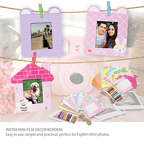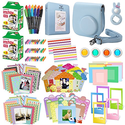 135 PIECE ACCESSORY KIT CONTAINS: 40 sheets of Fujifilm INSTAX Mini Instant Film, 1 Case, 1 Album, 4 Close up filters, 12 Marker pens, 10 Paper frames, 10 Bunny paper frames, 9 House Frames, 5 color plastic frames, 1 Selfie mirror lens, 2 sheets of corner stickers, & 40 piece film stickers