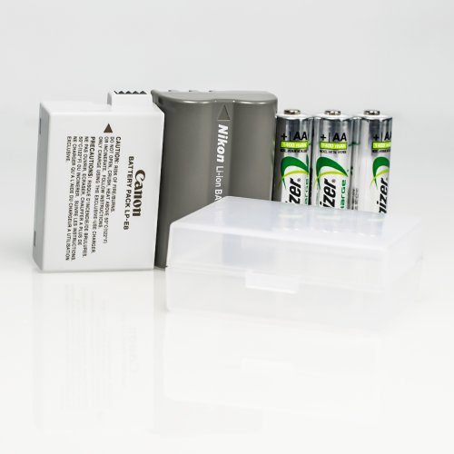 -. Title : FotoTech Clear Medium Battery Storage Case/Organizer/Holder for Nikon Canon DSLR Camera Rechargeable Li-Ion / AA / AAA / 9V Battery with FotoTech Velvet Bag