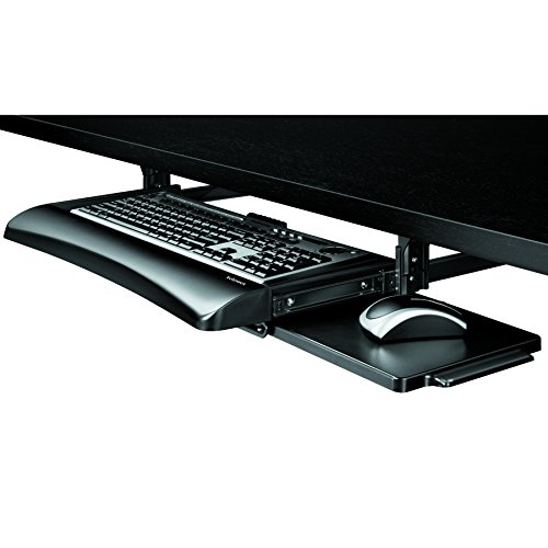 Reduce desktop clutter with the Fellowes Office Suites Underdesk Keyboard Drawer. Constructed from 100 percent recycled materials, this sturdy, impact-resistant drawer lets you move your keyboard and mouse off your desk to give you plenty of room to work. Easy to install, the drawer can be adjusted to three different heights and fits standard keyboards.