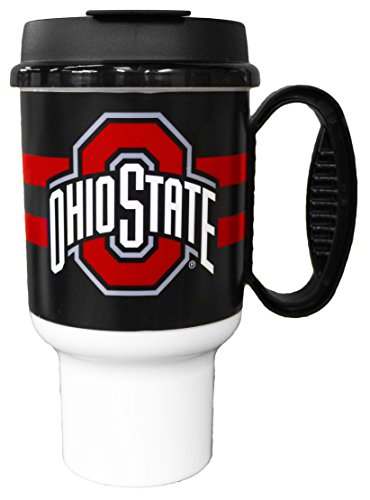 -. Title : GameDay Novelty NCAA Ohio State Buckeyes Striped Insulated Travel Mug with No Spill Flip Lid & Handle, 20 oz