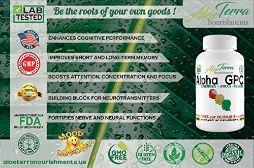 -. Feature : COMMITED TO OUR COMMUNITY - We share our Brain Improvement Program to Increase the Your Supplemention Efficiency Rate. We dream of a healthy and natural world, and during the Winter Holidays we are Planting a Cedar on your behalf for every single unit! We trust our services, giving 90 Days Money Back Guarantee so You can Try Without Any Risk! / ENHANCE YOUR LEARNING CAPACITY - Helps promote your ability to learn and improve concentration and motivation. Choline plays a key role in cognitive function and can help support energy levels, stamina and stimulate Neuroplasticity. Maximise your study time with sharpened focus to help boost exam performance. / IMPROVE YOUR WORK PRODUCTIVITY - Our natural brain boosting ingredients can help increase alertness and combat mental fatigue so you can take your productivity to the next level. Formulated to help support cognition, memory and clarity. No more missing the grandkids birthdays or special occasions / PREMIUM QUALITY - ECO & BIO INGREDIENTS - Our Product is made with Extreme Care for our Customers only out of Earth Grown Botanicals so it meets our Standards: Bio , 100% Natural and Organic. It is PURE and Hypoallergenic. Soy Free and Gluten Free, Zero Additives, Fillers and Dairy, it is Vegan, Halal and Kosher. Ecological Friendly & Supportive! / ALOETERRA TEAM MISSION & VISION - We are a Small US based Family Business. Devoted to Local Community, Nature and Health. Our Brand's mission is to make the world a better place, and we do so one step at a time. Just Think of how Earth would feel like if Every Product Sold Would Plant a Tree or Donate to Charity. Were we still breathe polluted air ?