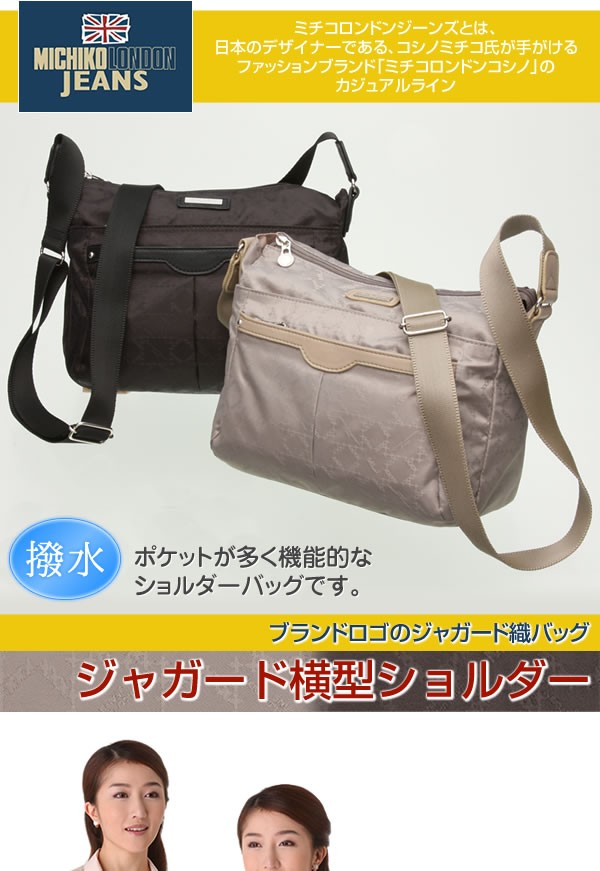 | <h1>日本のデザイナーである、コシノミチコ氏が手がけるファッションブランド「ミチコロンドンコシノ」のカジュアルライン。ポケットが多く機能的なブランドロゴジャガード柄のショルダーバッグです。便利なキーリング付き。</h1> |