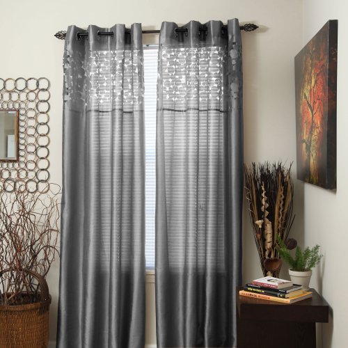 This Karla grommet-top panel with dramatic laser-cut faux silk is sure to set your window treatments apart. This panel beautifully frames windows adding depth to any room. Bring style home with this Karla Window Panel Grommet Curtain.Feature