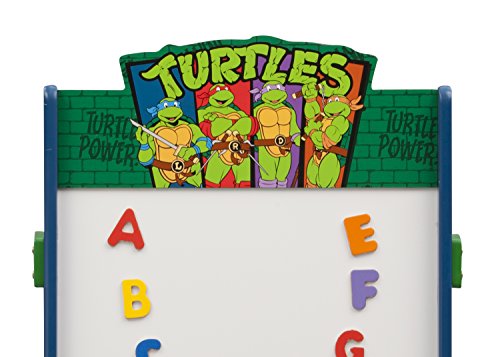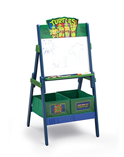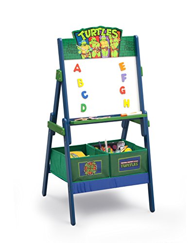 Studio : Delta Children Publisher : Delta Children Binding : Kitchen Product Description Your little ones will enjoy getting creative with this Teenage Mutant Ninja Turtles Activity Easel by Delta Children. It features a magnetic, dry-erase surface that will showcase all of their favorite masterpieces. This kids' activity easel is topped with a colorful image of Leonardo, Donatello, Michelangelo and Raphael. It includes alphabet magnets and has two fabric bins underneath, so your little TMNT fan can store chalk, markers and other toys and supplies. This easel is ideal for bedrooms, classrooms or play areas, and is recommended for ages 3-8 years old. About Ninja Turtles: Trained in the art of ninjutsu by a sensei they call Master Splinter, the Teenage Mutant Ninja Turtles, Leonardo, Donatello, Raphael and Michelangelo, bravely face evil more dangerous and pizza more delicious than anything they could have imagined. With help from their friends April O'Neil and Casey Jones, these radical reptile brothers become the heroes they were destined to be, and have loads of fun along the way! 0