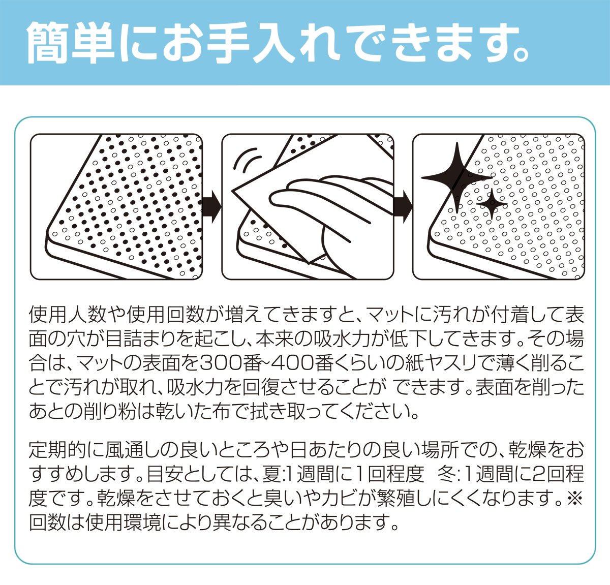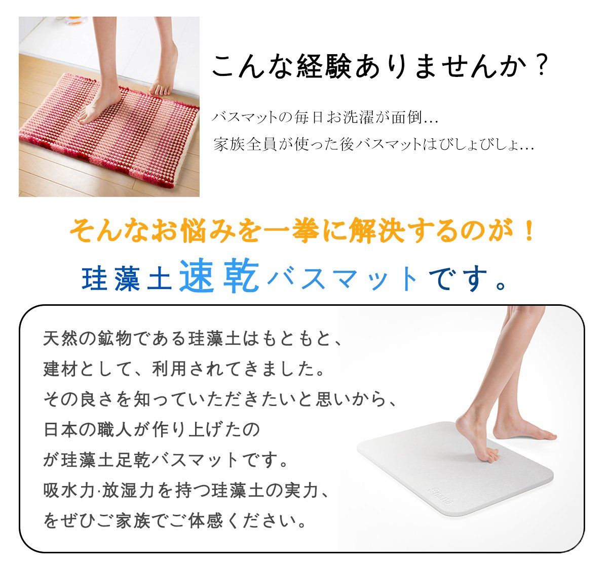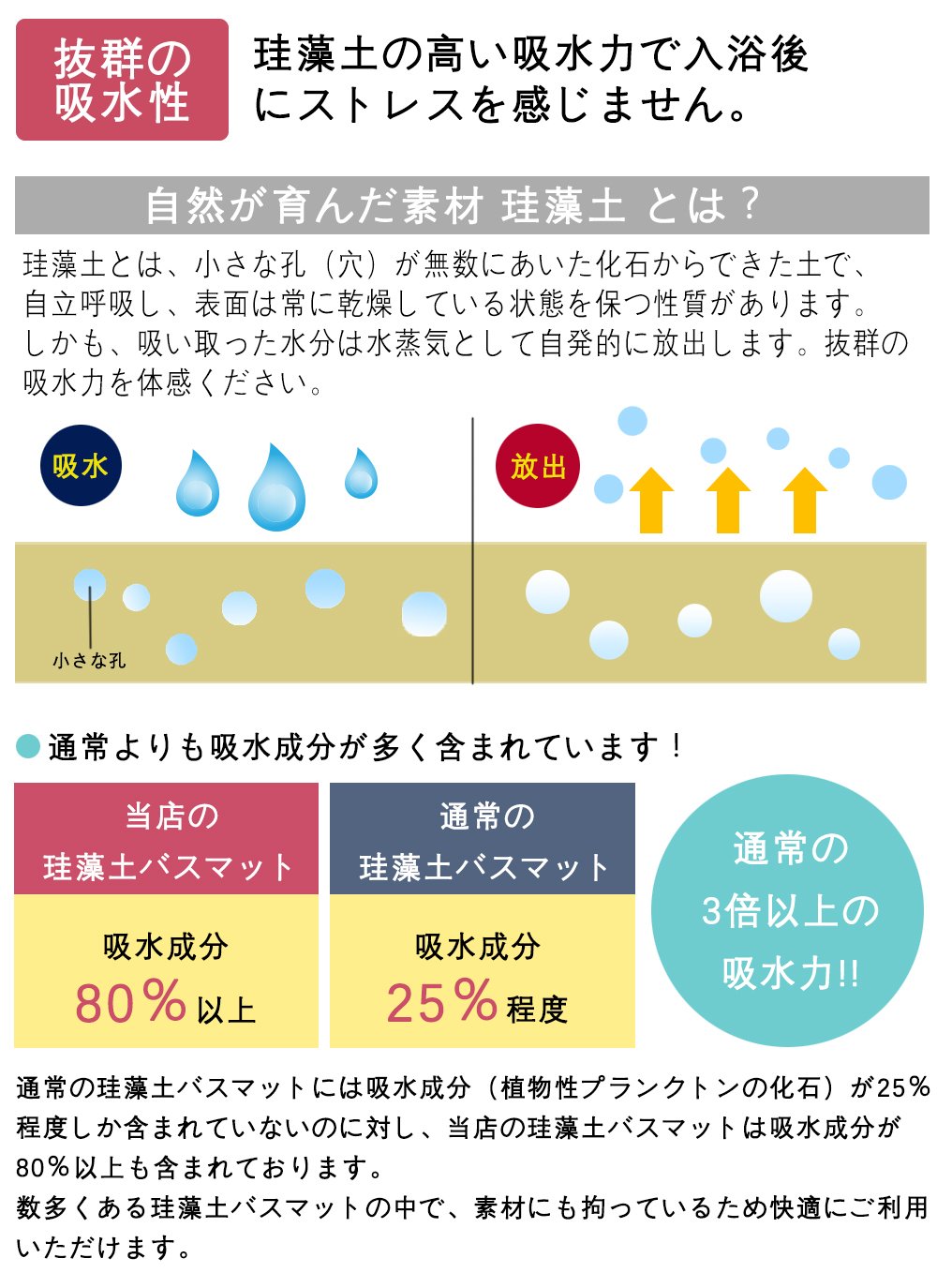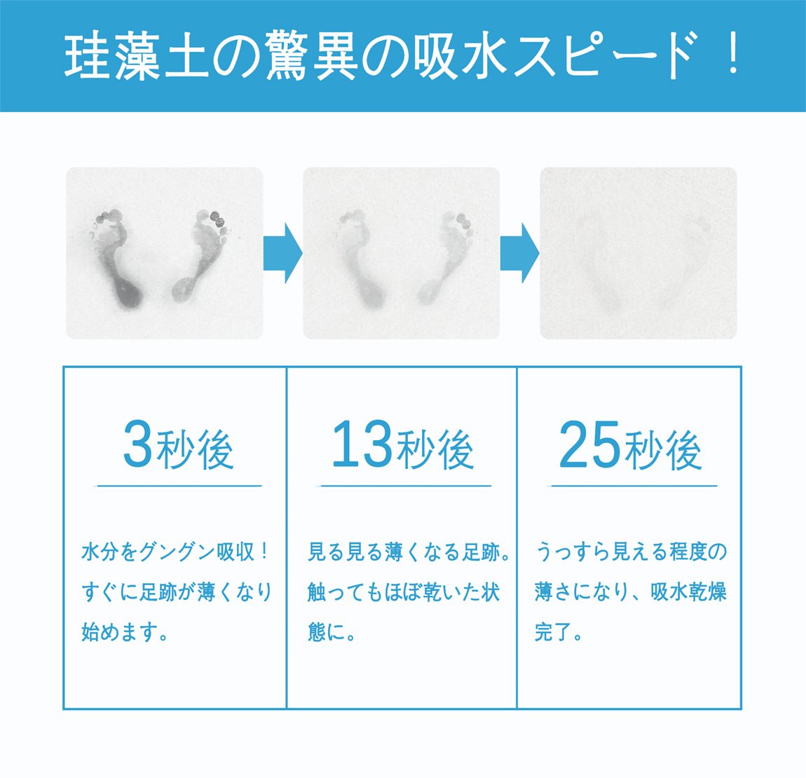 Diatomaceous earth bath mat It absorbs moisture instantly by the effect of a myriad of small holes opened on the surface.