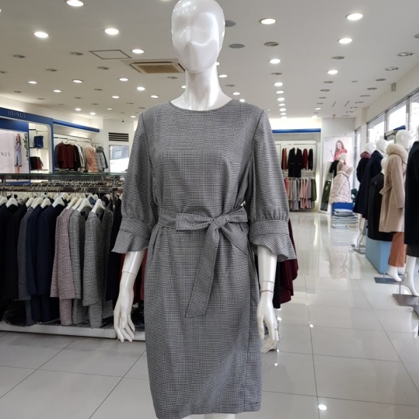칠부소매 허리밸트 원피스-CA8S2-WOP070-블랙-2