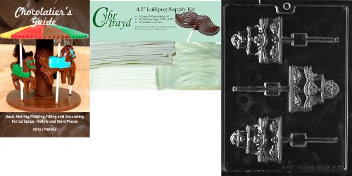 Cybrtrayd Wedding Cake Lolly Wedding Chocolate Candy Mold with Chocolatier's Bundle, Includes 50 Lollipop Sticks, 50 Cello Bags, 50 White Twist Ties and Chocolatier's Guide