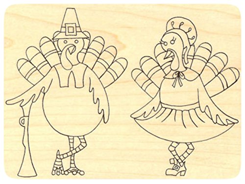 -. Title : {Single Count} Unique & Custom (4 3/4" by 3 1/2" Inches) "Thanksgiving Turkey Pilgrims Scene" Rectangle Shaped Genuine Wood Mounted Rubber Inking Stamp
