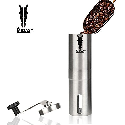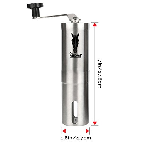 ★COMPACT & PORTABLE: Our original Midas manual coffee grinder is very compactable in its dimension and ideal for a quick coffee break. Whether you are traveling, hiking, camping, backpacking with our quick & easy mini coffee mill, you can enjoy freshly grinded coffee anywhere!