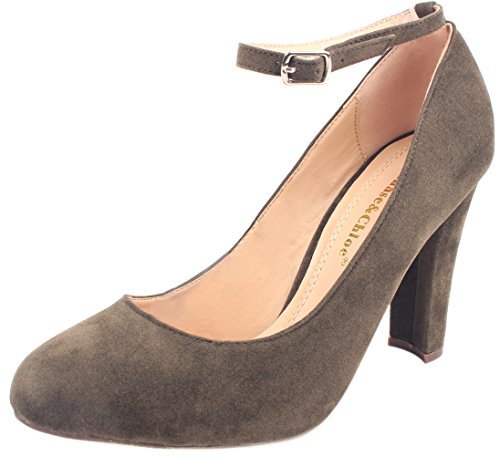 Enimay Women's 3 Inch Heel Round Toe Dress Pump Shoe Ankle Strap Buckle Closure