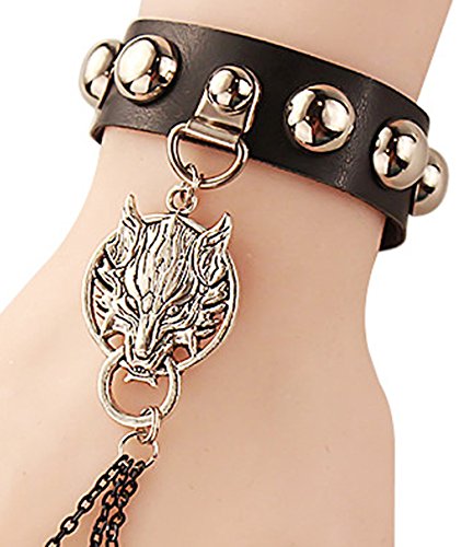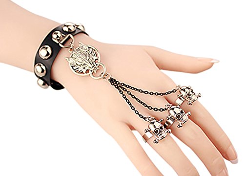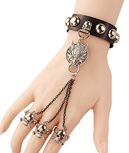 - Title : Btime Christmas Rock Punk Wolf Skull Bracelet Wristband with Linked Finger Rings
