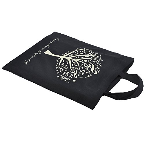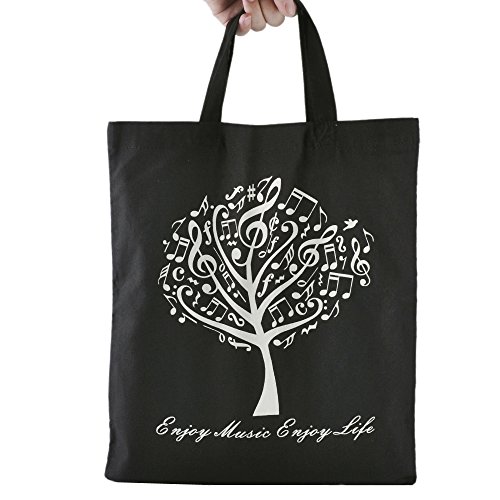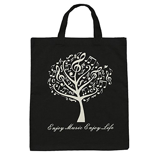 KingPoint Cotton Handbag Women Shopping Bags in Muisc Clef Theme Patterns High Notes and Musical Instruments Designs (Music Tree Black)