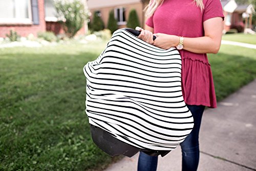 3-in-1 Cover. Baby Car Seat Cover. Nursing Cover. Shopping Cart Cover. Stretchy fabric fits most car seats, shopping carts, and nursing mothers;Covers are made for all season use and provide protection against the elements. Great for both nursing and as a car seat cover.;High quality, modern, and trendy fabric is a rayon blend and folds compactly for easy storage.;Easy to use, easy to put on and take off of your car seat, easy to see and access your baby while nursing / breastfeeding;Every new mom will want one of these nursing covers / car seat covers as a baby shower gift!Feature