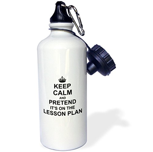 3dRose wb_157780_1 Keep Calm and Pretend Its on The Lesson Plan-Funny Teacher Gifts-Teaching Humor-Humorous Fun Sports Water Bottle, 21 oz, White
