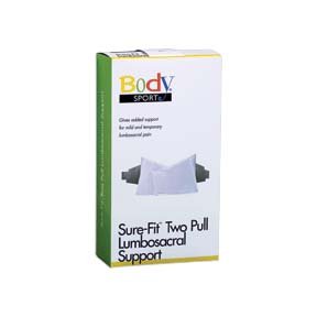 -. Binding : Misc. -. Brand : Body Sport -. Feature : Designed for relief of lumbosacral pain. / Plastic stays eliminate rolling. / A full 9" wide. / Velcro® lasts for up to 10,000 closures. / Regular fits 34" - 46" waists. -. Label : Body Sport -. LegalDisclaimer : Actual product packaging and materials may contain more and different information than what is shown on our website. We recommend that you do not rely solely on the information presented and that you always read labels, warnings, and directions before using or consuming a product. -. Manufacturer : Body Sport -. MPN : BDS103P -. PackageQuantity : 1 -. PartNumber : BDS103P -. ProductGroup : Sports -. ProductTypeName : SPORTING_GOODS -. Publisher : Body Sport -. Studio : Body Sport -. Title : Body Sport 2 Pull Lumbosacral Support 3/8" - Durofoam Construction
