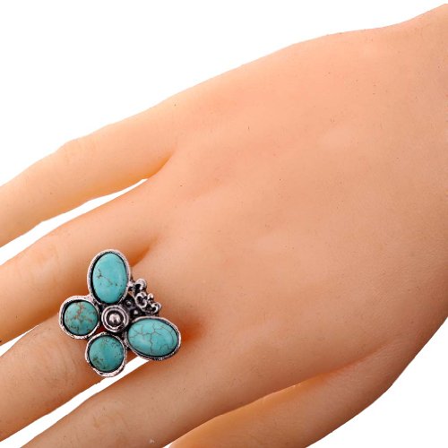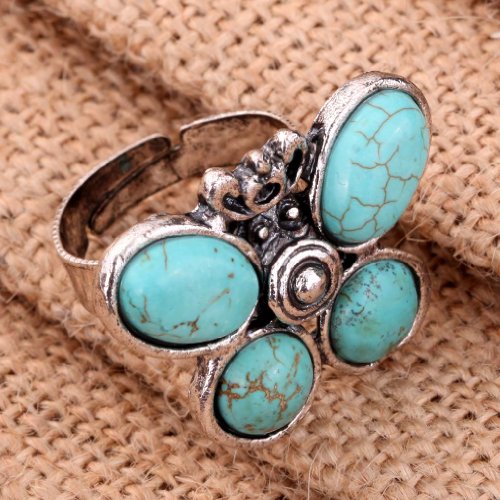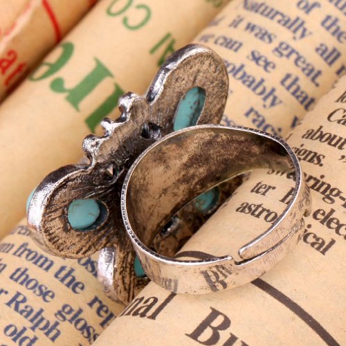 - Title : Yazilind Jewelry Vintage Turquoise Tibetan Silver Striking Simplicity Butterfly Adjustable Ring for Women