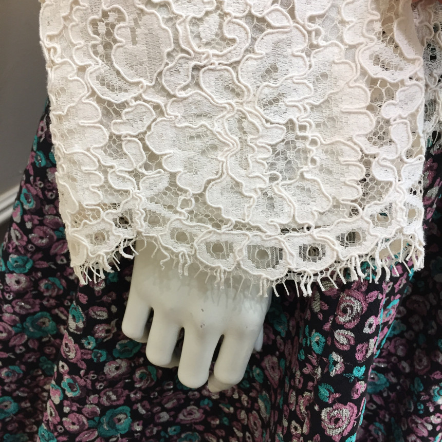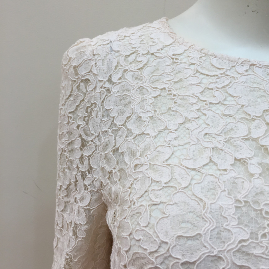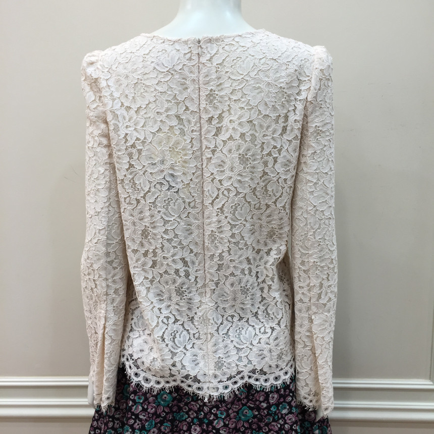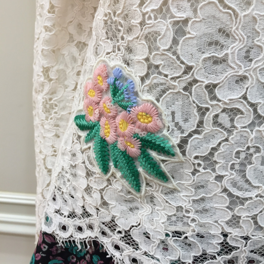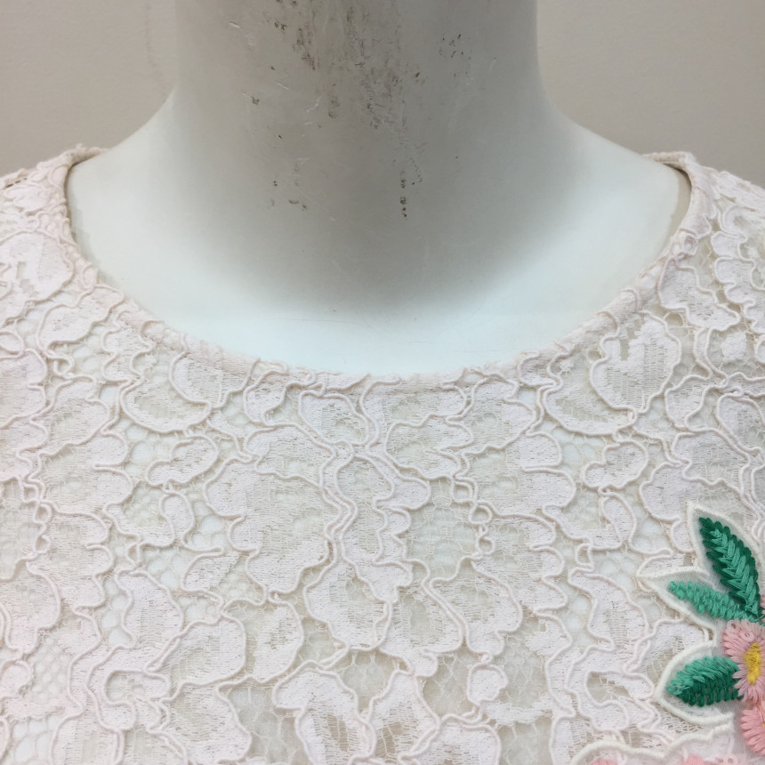 레이스원단에 칼라감이 사랑스러운 꽃모양의 자수를 놓은 블라우스 입니다.