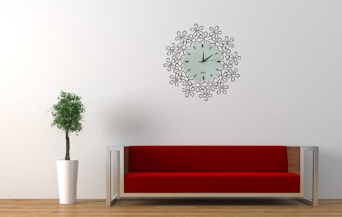 - Feature : Decorative Metal Wall clock diameter 23.50" with black metal flowers & beautiful crystal accents. Please beware of cheap plastic reproductions. / Aprox weight 4 lbs. The black metal frame highlights any wall and the 11" glass dial is easy to view from a distance. / Silent Non-ticking, high quality quartz battery operated movement. / Decorative metal wall clock, designed inspired by Daisy Flowers. / Requires one AA battery (not included).