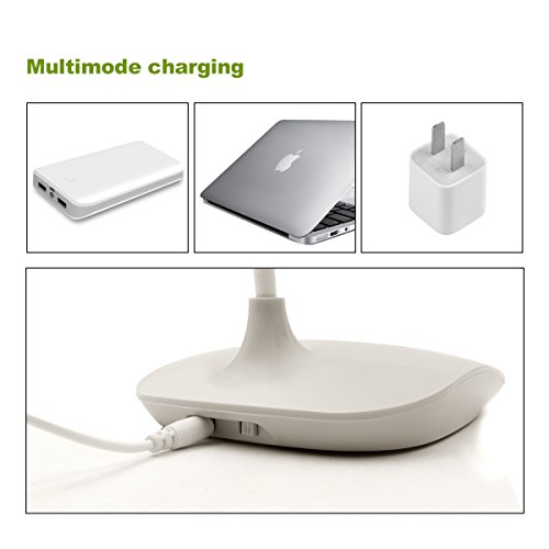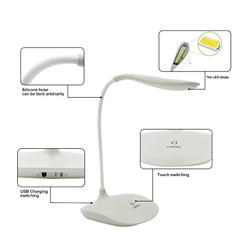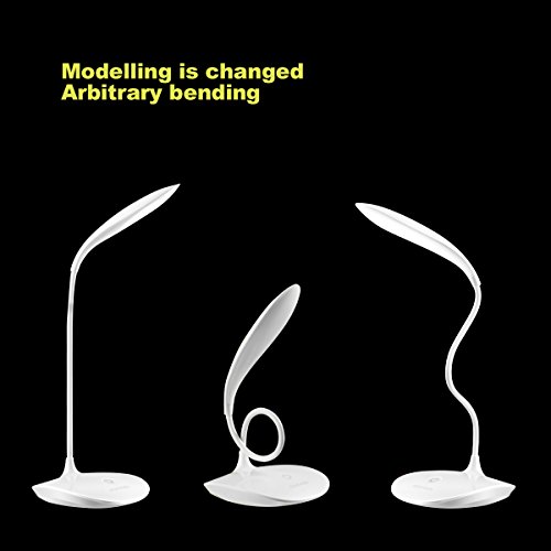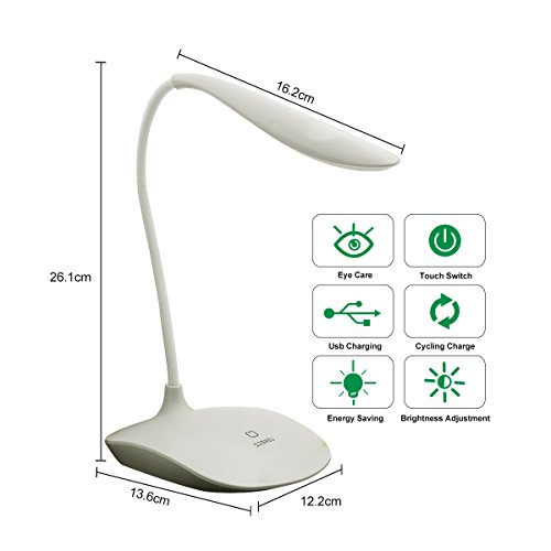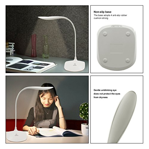 LED Desk Lamp, AUSACO Eye-care Stepless Dimming Table Lamp with Touch Control Modern USB Port Rechargeable, Adjustable Small Gooseneck Book Light for Studying,Reading,Camping,Working-White