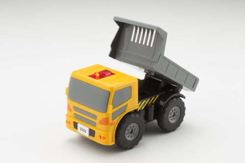 みんな大好き建機シリーズがちびっこサイズで新登場!! ■A・B・Cチャンネル切り替えで3台同時に操作可能! ■全長約20cm。室内で遊びやすいコンパクトサイズ。 ■7つのリアルなサウンド搭載(エンジンスタート音・アイドリング音・走行音・警告音・エンジンストップ音・アクション音・クラクション) ■ プラスチック製 いしブロック付き。 ・連続操作時間:約45分 ・操作距離:屋内約5m ※こちらはダンプトラック(はこぶ)です。 ※ホイールローダー(あつめる)、ショベルカー(すくう)は別売りです。 ■電池:単3×4本(別売)、単4×3本(別売)