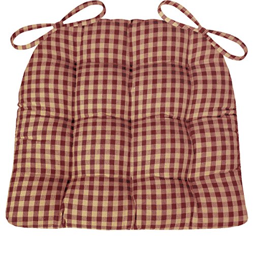 -. Binding : Kitchen -. Brand : Barnett -. Color : Multi -. Feature : Premium latex rubber fill for ultimate comfort and durability -- more comfortable than polyester and won't flatten / Triple-stitched back-ties and lock-stitched seams won't pop / Nine tacking-stitches, instead of four, keeps fill in place / Machine washable, air dry. Made in the USA with imported fabric / Available in two sizes and several color combinations -. Label : Barnett Products -. Manufacturer : Barnett Products -. PackageQuantity : 1 -. ProductGroup : Furniture -. ProductTypeName : HOME -. Publisher : Barnett Products -. Studio : Barnett Products -. Title : Dining Chair Pad with Ties - Checkers 1/4" Check - Reversible, Latex Foam Fill - Tufted Rocking Chair Seat Cushion