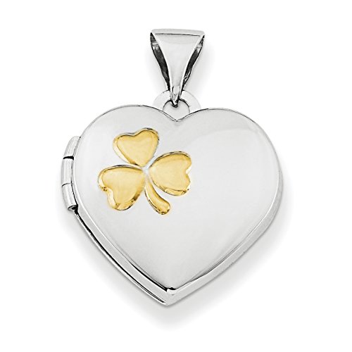 ICECARATS DESIGNER JEWELRY 925 STERLING SILVER 15MM HEART LOCKET GOLD PLATED CLOVER