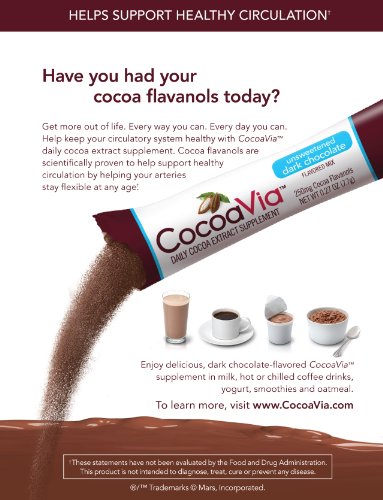 - Title : CocoaVia Dietary Supplement, Unsweetened, Dark Chocolate 0.27 Ounces each, 30 Count