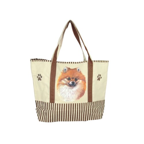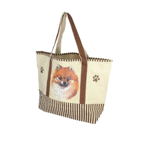 Binding : Apparel Product Description Attractive and roomy, this trendy cotton canvas tote is the perfect accessory for every girl about town. Natural color background; brown striped trim and bottom section. Tote's front is screen printed with two paw prints and breed illustration by artist David Wenzel. 7 in wide flat bottom for lots of space. Striped tote bag measures 15 x 20 x 7 inches 0