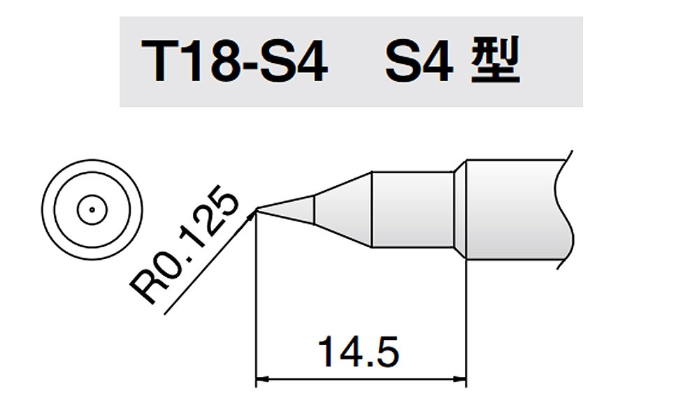 Hakko T18-S4 - T18 Series Soldering Tip for Hakko FX-888/FX-8801 - Conical - Sharp - R0.125 mm x 14.5 mm