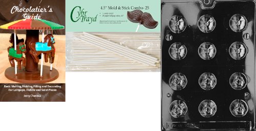 Cybrtrayd 45St25Bk-F047 'Tulip Lolly' Fruits and Vegetables Chocolate Candy Mold with 25 4.5-Inch Lollipop Sticks and Chocolatier's Guide