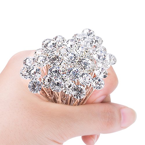 -. Feature : Package: 40 pack crystal hair pins with storage bag, the bridal hair pins are packed in a plastic box, you can store the clips in the plastic box or carry it with a bag / Size: 6.5 cm/ 2.56 inch in length; Rhinestone diameter size is 0.8 cm/0.3 inch; Weight: 52 g/ 40 pack / Wide use: good for wedding wearing, proms, parties, photo props and other special occasions; Suitable for women of all ages / Simple stylish design: decorated with clear crystal rhinestone on the top of the crystal pin, attractive and graceful look; There have curves texture along the pin to hold in the hair versus straight / Beautiful accessories: good assistant for your make up and easy to DIY your own hairstyle, reflect light and gleam in the lights, use these clear crystal hair pins in various parties make you look more charming