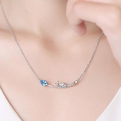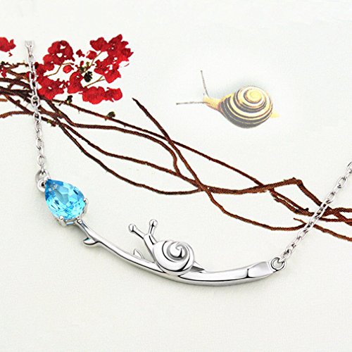 ♥HIGH-QUALITY♥ - the mental of chain and pendant: 925 Sterling Silver (plated with 18K white gold). Pendant and each chain is affixed with the highest quality sterling sliver "S925". This blue gemstone is a natural topaz. Inspired by the nature, this pendent presents vividly how a snail lays on a twig. GEM stone topaz: high quality.