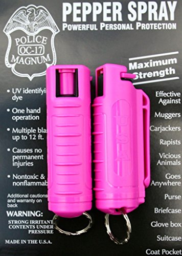 2 PACK POLICE MAGNUM PEPPER SPRAY .50oz PINK MOLDED KEYCHAIN