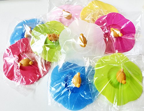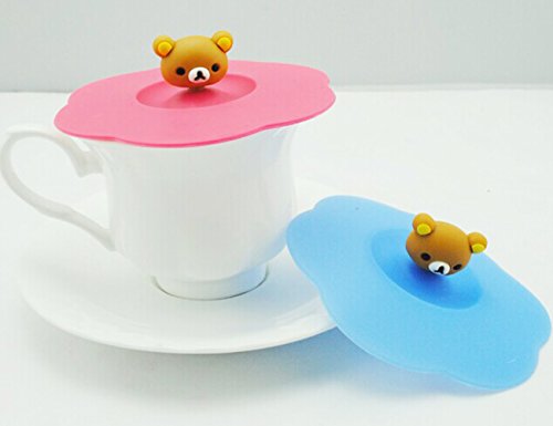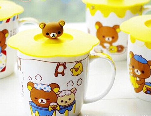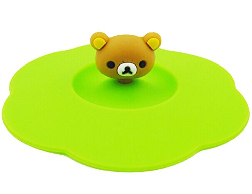 Rimobul 4 Pcs Leakproof Silicone Cup Lid Cover, Random Color (Bear)