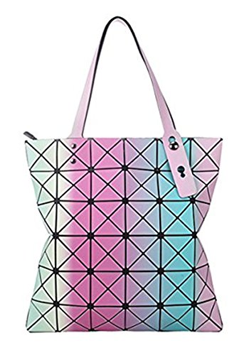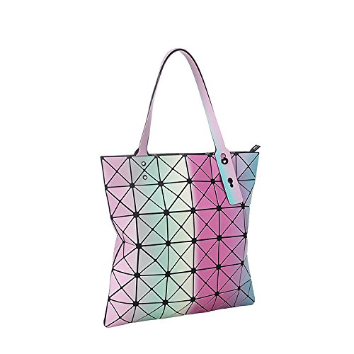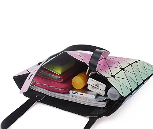 BeautyWJY Women Hologram Geometric Split Joint Plaid Shoulder Handbag Cross Body Purse