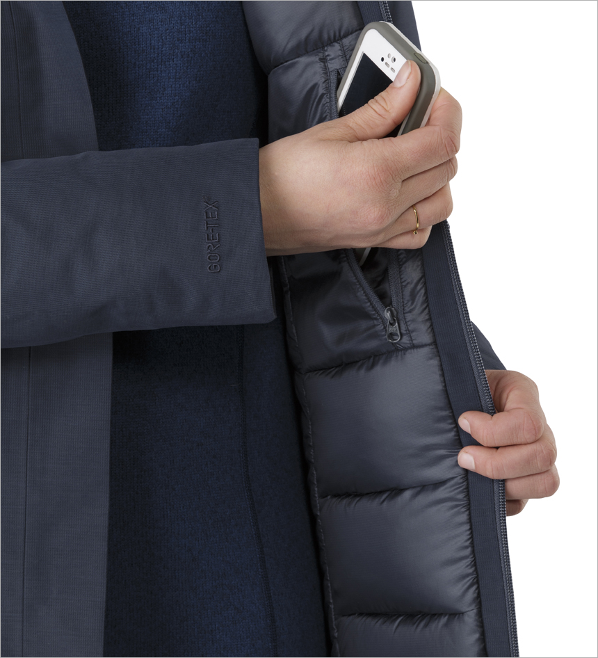 세련되고 감각적인 시티 스타일의 방수/방풍 다운 파카. 750필파워 유러피언 구스 다운과 속건성 합성 보온재 Coreloft™를 함께 사용해 보온력과 내구성, 실용성을 가졌다.