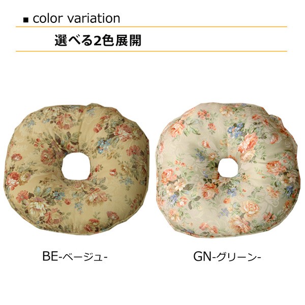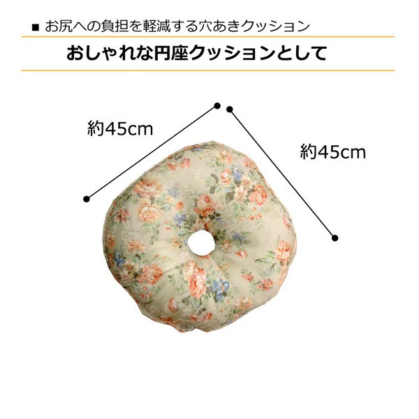 【商品名】クッション 円座 円座クッション エレガンス 花柄 『モニエール』 グリーン 約45cm丸 2枚組