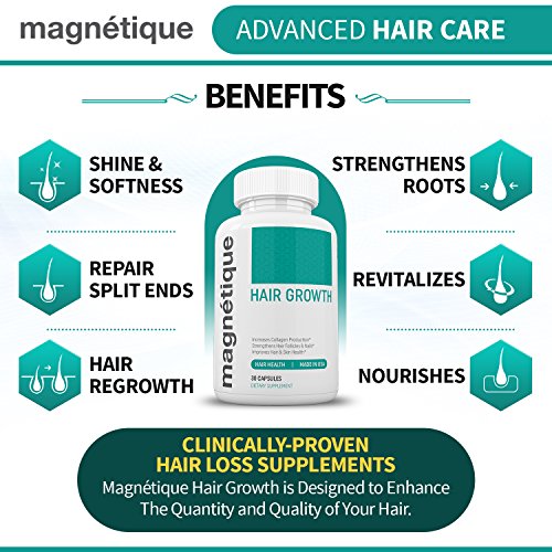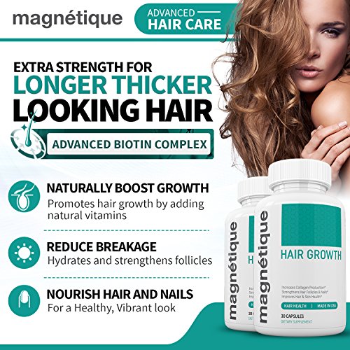 When your body is trying to keep itself running, hair health is one of the first things your body sacrifices. Feeling sluggish? Looking a little run down? Like so many others, your diet may be missing essential nutrients. Magnétique's Hair Growth supplement fills in the gaps so you can have gorgeous, voluminous hair. Our formulation naturally targets hair health to boost growth, reduce breakage, and stops thinning at the source. Magnétique is a maximum strength Biotin complex that helps nourish the scalp and stimulate hair growth.