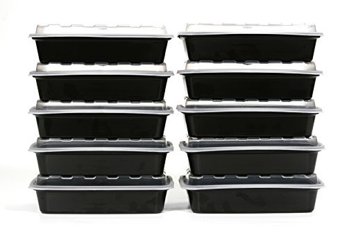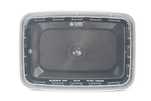 Set of 10 16 oz. Black Base Plastic Container with Clear Plastic Dome Lid - 7 1/3 x 5 x 1 1/2 CR815B CUBE PLASTICS