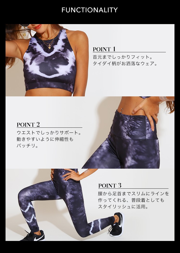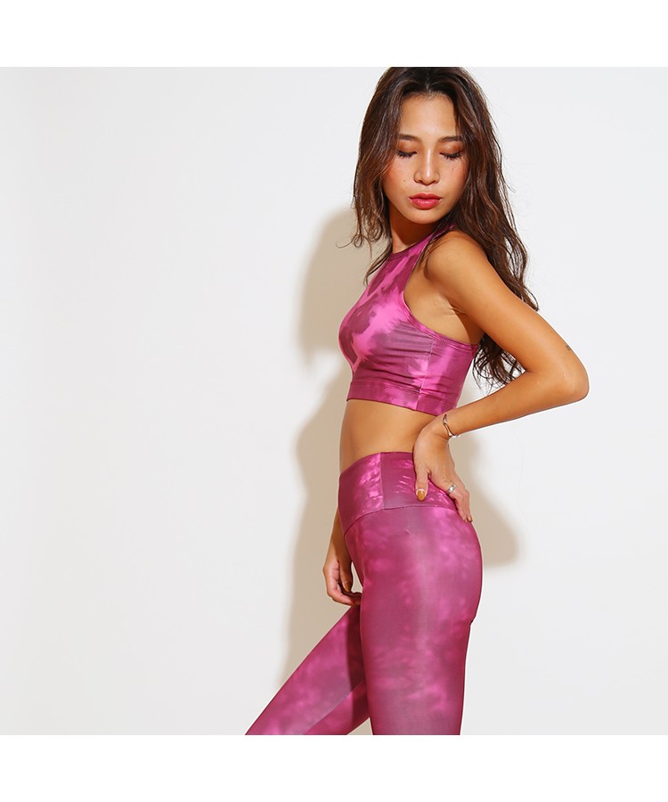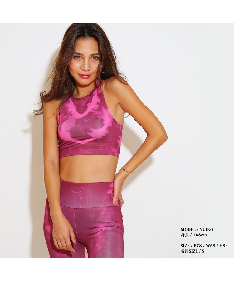 | 商品特徴 | LAVIA SPORT(ラヴィアスポーツ)から新作のスポーツウェアが入荷しました。さらりとした触り心地と伸縮性のあるのびーる生地が着心地抜群な上下セットのウェア!触り心地はしっとりツルッとしていてとにかく柔らかいので優しく肌に馴染みます。タンクのバックラインはY字デザインになっているので背中を美しく見せてくれて、肩、腕周りの邪魔にもなりません。アンダーライン、パンツのウエスト部分にはゴムが入っているので、しっかり体にフィットしてくれます。フィットネス、人気のヨガなど幅広いシーンで活躍間違いなし!トップスはパットなし、パットポケット無しタイプとなります。個性が際立つタイダイ染めの柄は2色展開となります。 |
