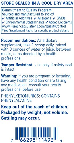 DOSAGE: Pure Encapsulations recommends 1 serving daily, mixed with 8 oz of water or juice, between meals, or as directed by a health professional. Servings Per Container: 60.