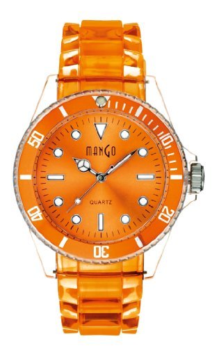 Mango Tutti Frutti Trend Armbanduhr aus hochwertigem PE-Kunststoffgehäuse, Silikonarmband mit Dornschliesse. Wasserdicht bis 3 ATM und Mineralglas, drehbare Lünette.