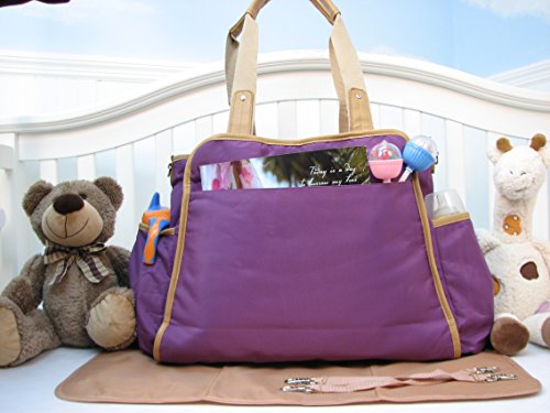 - Feature : 3 pieces Ultra Rommy Diaper Bag Set, with three large divided section for this bag ! / 1. Ultra roomy Main compartment with over 10 multiple pockets ,Reliable zip-top closure with carrying strap / 2.Matching Padded Changing Station for you little one. / 3. A pair of Grips strollers attachments for your stroller / ** Stuff animals and baby bottle in the pictures are not included in this set **