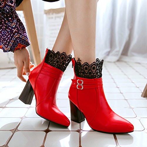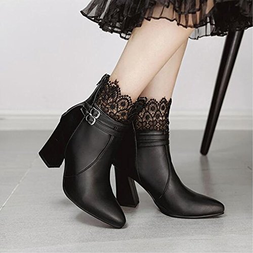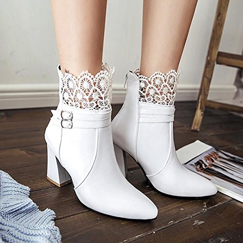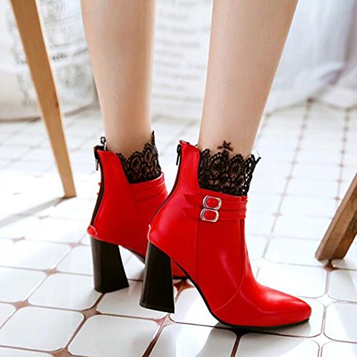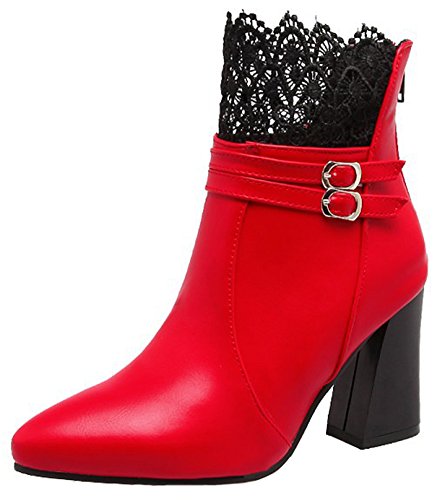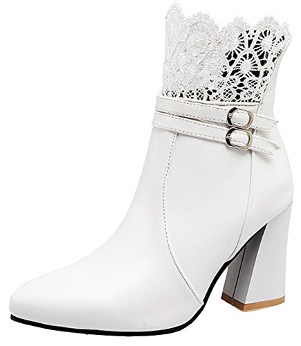 (Mofri)/Women's/Boots/DIRECT FROM USA/Mofri Women's Sexy Lace Splicing Buckle Belt Back Zipper Ankle Booties Pointed Toe Block High H...