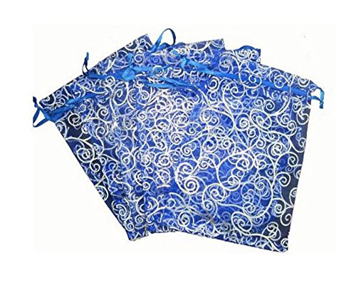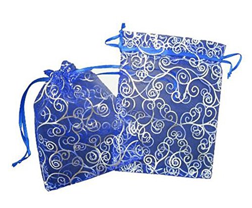 KINGWEDDING 3"x4" 8x10cm Blue and White Print Organza Drawstring Strong Candy Jewelry Pouch Gift Bag For Party Wedding Favor (100Pcs)