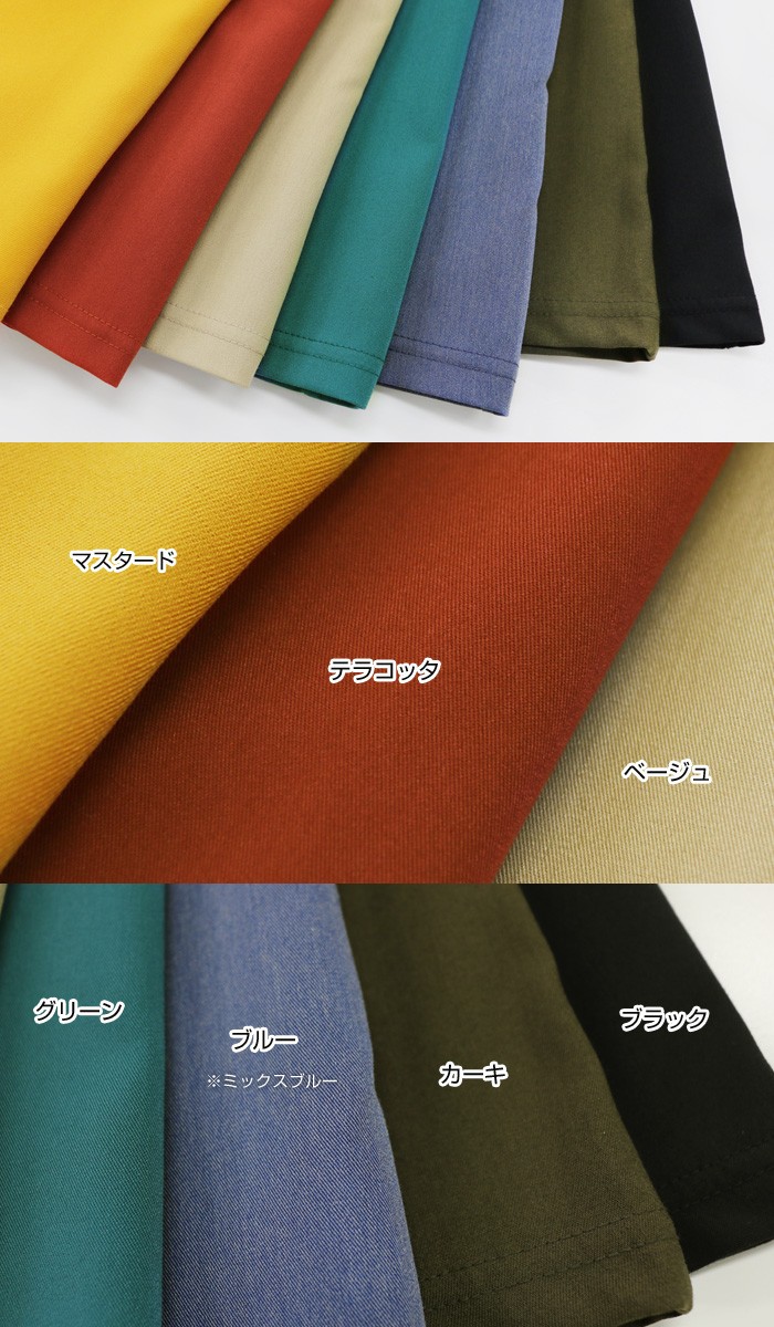 | サイズ | Mサイズ | | 実寸 | 着丈:77cm ウエスト:33cm(ゴム有) ヒップ:54cm 裾幅:74.5cm | | 素材 | ポリエステル 63% レーヨン 33% ポリウレタン 4% | | 生産国 | 中国 | | 裏地 | なし | | 生地の伸縮 | なし | | 生地の透け感 | なし | | カラー | 01. ブラック 02. ベージュ 03. テラコッタ 04. ブルー 05. カーキ 06. グリーン 07. マスタード | | 注意点 | ▼綿混合商品は洗濯時に多少縮む事がございます。 ▼パソコン、モニター等の環境により、実際の商品素材カラーが多少異なる場合が御座います。予めご了承ください。 ▼お手数ですが必ずお買い物ガイドを一読頂いてからご利用いただきますようお願い申し上げます。 | |