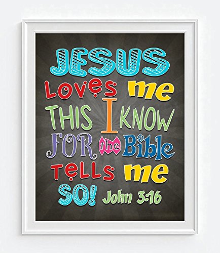This is an 8x10 inch UNFRAMED reproduction print of a classic Christian phrase. The background is a charcoal color which really contrasts against the vibrant colors of the words. This is a perfect inspirational gift for a nursery.