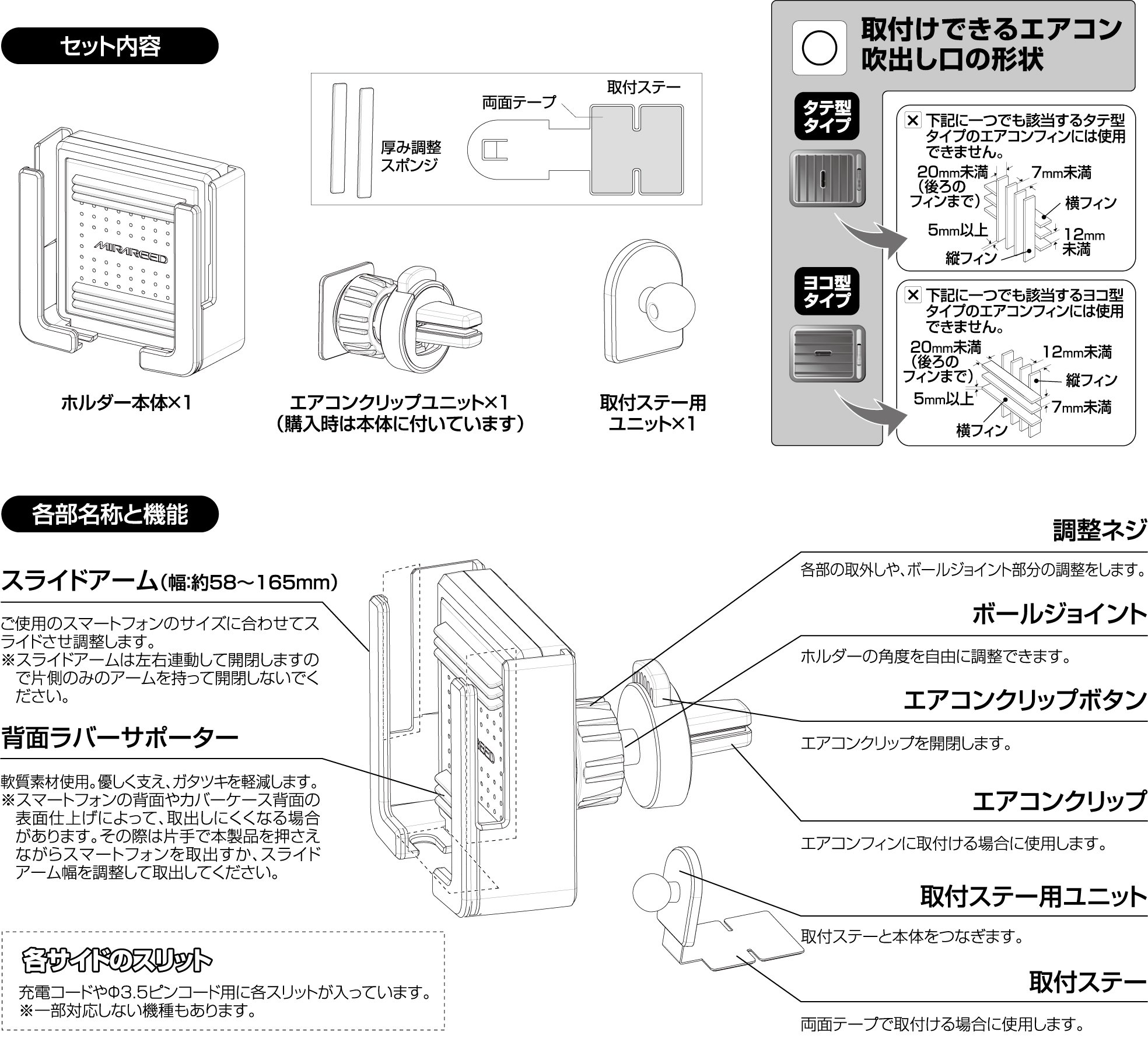 MIRAREED smartphone holder large smartphone can also horizontal holder black PH-1508