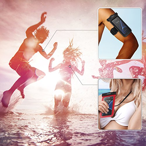 Universal Waterproof Case, MoKo Cellphone Dry Bag with Armband Neck Strap for iPhone 7, 6s, 6, 6s Plus, SE, 5s, Samsung Note 7 5, S7 Edge, LG BLU Sony Huawei Motorola & Other Devices up to 6", RED