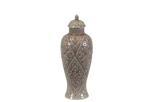 UTC 70882 Pink Ceramic Jar with Tribal Accent